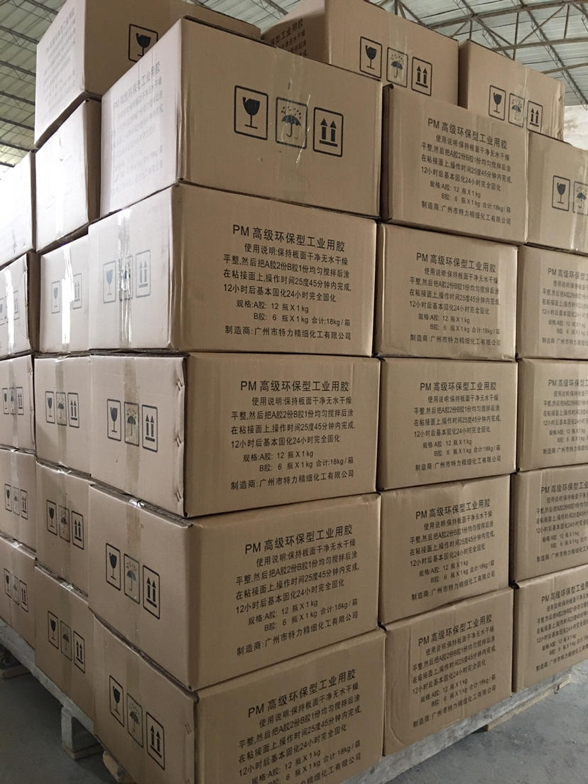 2:把A胶与B胶 重量比【如:A2公斤-B1公斤】混合搅拌均匀一致,然后涂抹在已经处理好的板面上,进行贴片,压实,平面可操作时间【常温25-30度左右1小时内,低于5-20度1.5小时左右】8-15小时基本固化,24-36小时完全固化,48小时-72小时后可以测试剥离强度。
